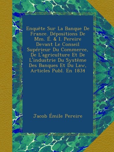 Enquête Sur La Banque De France. Dépositions De Mm. É. & I. Pereire Devant Le Conseil Supérieur Du Commerce, De L'agriculture Et De L'industrie Du ... Law, Articles Publ. En 1834 (French Edition) Review